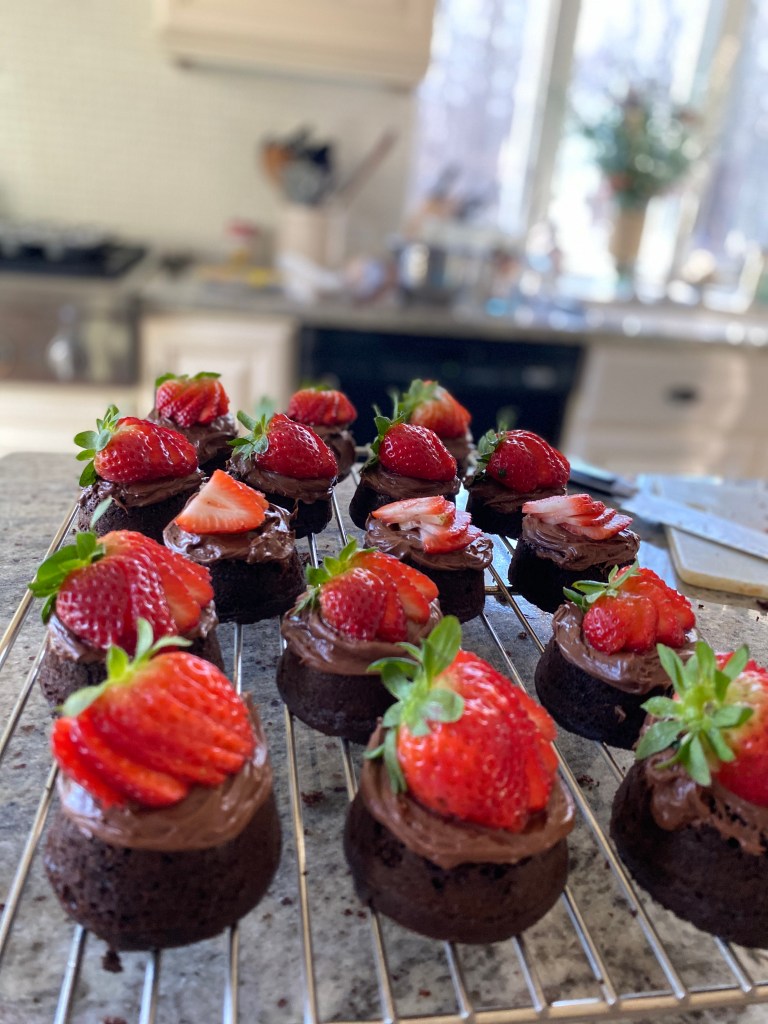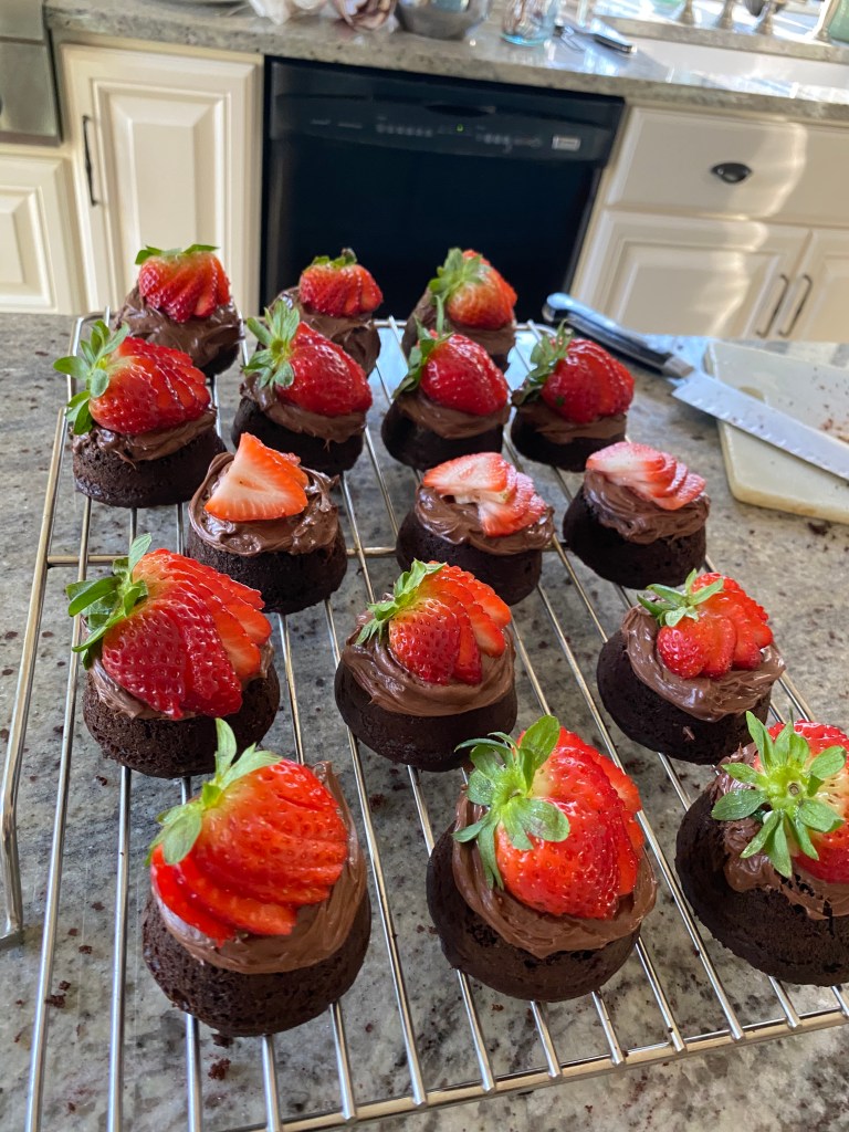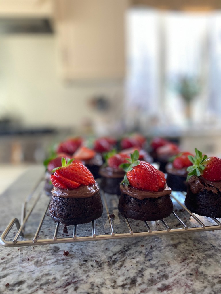 Now here’s the thing. I wanted to make miniature chocolate cakes. But the miniature springform pans I thought I had are in Indiana, not Connecticut (don’t ask). What I should have done, retrospectively, is used a biscuit cutter to cut circles out of a larger cake. But what I ended up doing, was upside cupcakes because *creativity* (read: stupidity. I’m an absolute moron).