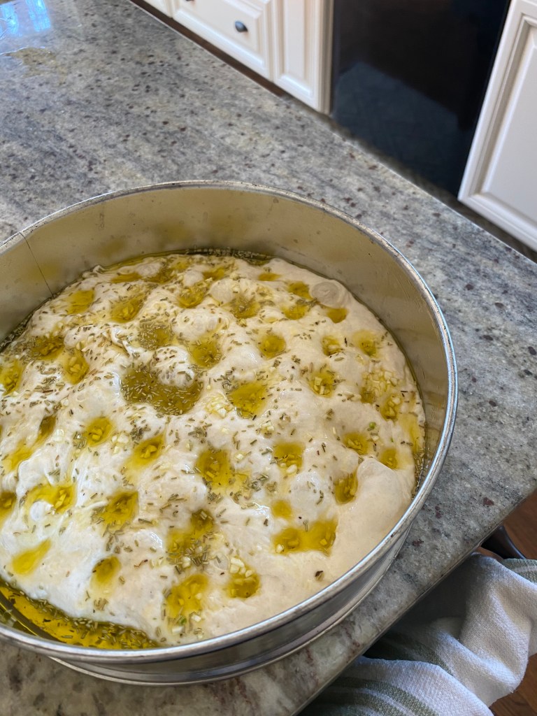 I came home around 1am yesterday and decided that today I would try my hand at focaccia, one of my favorite types of bread. I quickly looked up a recipe and made the dough so that it could rise overnight in the fridge.